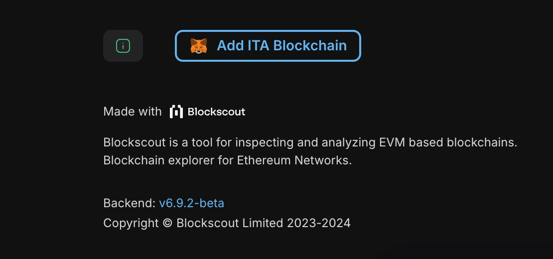 Scroll down to the bottom of the page and click “Add ITA Blockchain”.